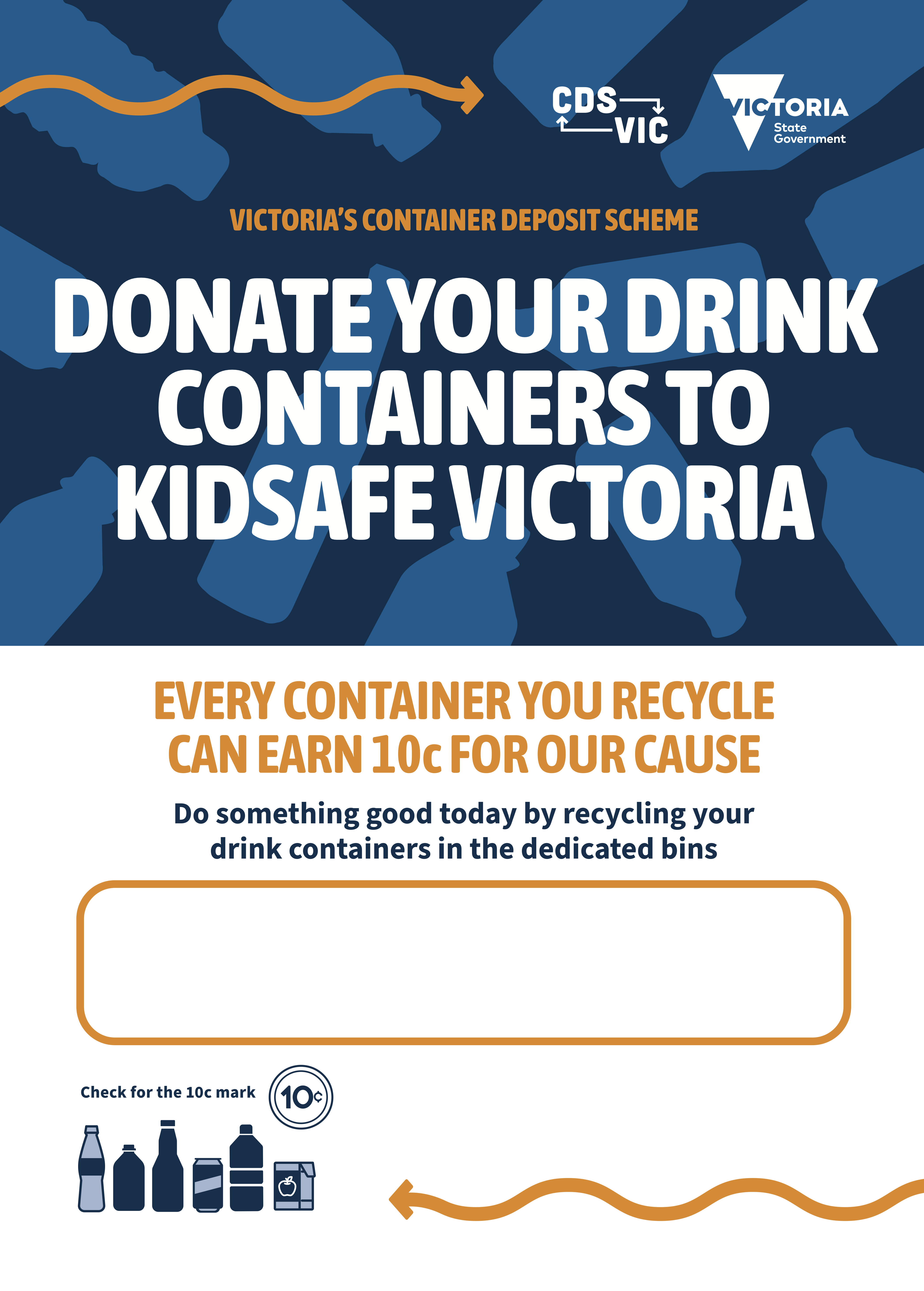 Search Kidsafe Vic or use our Donation Partner ID: C2000010680 at the checkout and your cans will be turned into a donation to Kidsafe Victoria!