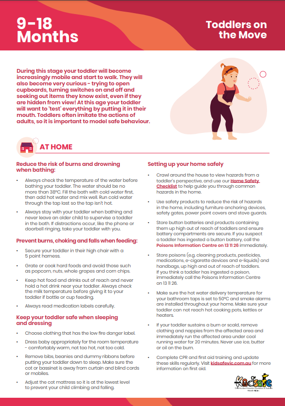 Some resources and links that you may find useful to help keep your active and inquisitive toddler safe at this stage include: