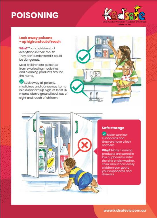 - Poisoning prevention: Information on common causes of poisoning and practical advice on how to reduce the risks