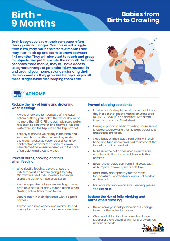 Some resources and links that you may find useful to help you keep your baby safe at this stage include: